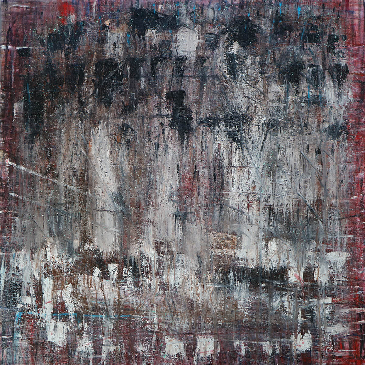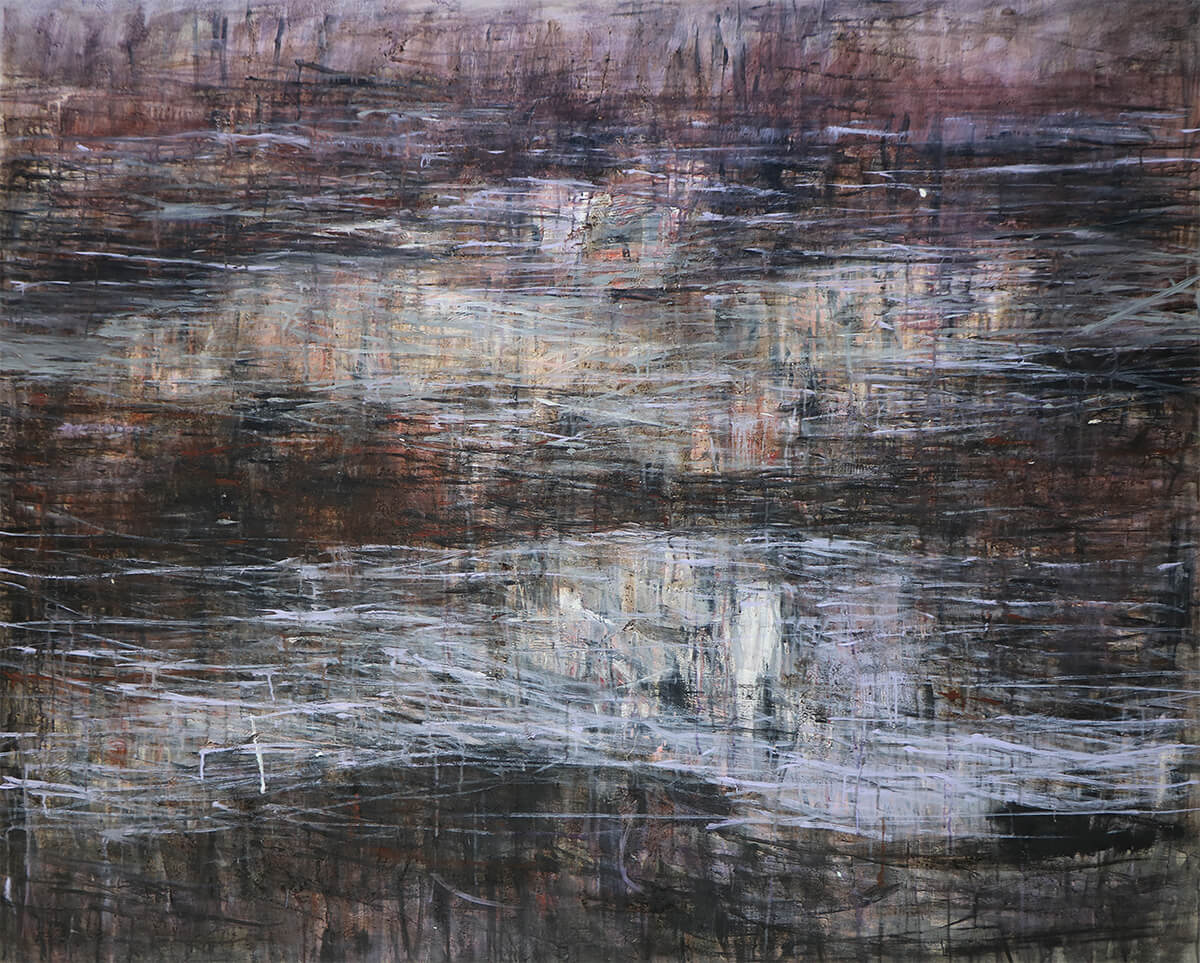 I chose “Scapes” as a title for this body of work for a specific reason. Its meaning is ambiguous and does not easily stand on its own aside from its use in botany and entomology. “Scape” is part of words describing the environment as in land-, sea- or cityscape. It can also describe seeking refuge as in “escape.” These multifaceted aspects speak directly to where these paintings have led me, a refugium for an artist transitioning from figurative to more abstract subjects, using an increasingly dense web of brush strokes.